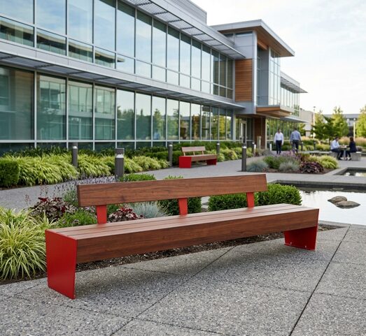Crafted for durability and balance, the Sunlit Collection pairs precision-formed steel with the warmth of natural wood. Each bench and receptacle is designed to complement a range of public spaces, from urban plazas to campus courtyards. The result is a modern, grounded aesthetic that brings comfort and character to everyday environments.